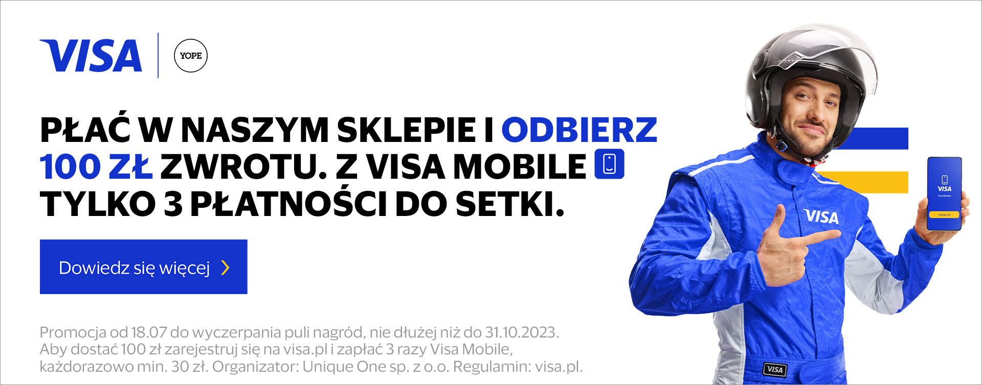 Płać bezpiecznie i wygodnie VISA MOBILE i odbierz do 100 zł zwrotu za zakupy